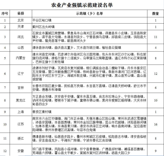 通过农业农村部官网获悉,根据中央农村工作会议、中央1号文件有关部署要求,为深化农业供给侧结构性改革,推动实施乡村振兴战略,2018年农业农村部、财政部启动农业产业强镇示范建设工作。经县(市、区)申请、省级遴选、部级审查,决定批准北京市平谷区峪口镇等254个镇(乡)开展农业产业强镇示范建设。