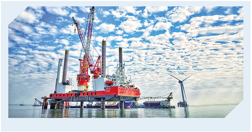 图为建设中的福建福清兴化湾30万千瓦海上风电场一期工程。 王轶辰摄