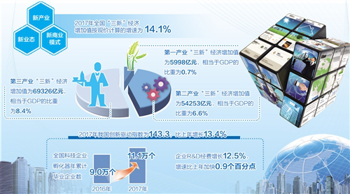 2017年“三新”经济增加值增速快于同期GDP增速——