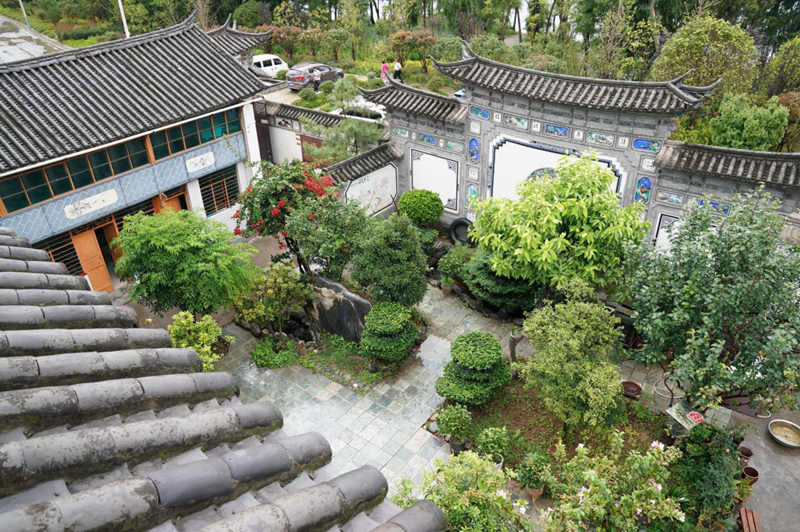 李德昌家的小院宽敞明亮,绿意盎然,体现了坊、阁、照壁相结合的白族传统建筑风格。“这个院子是我在1997年盖起来的。”李德昌说。