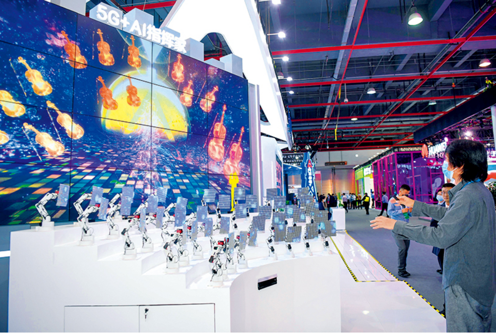 11月26日,工作人员在2020世界5G大会上调试5G体验设施 邓华摄/新华网