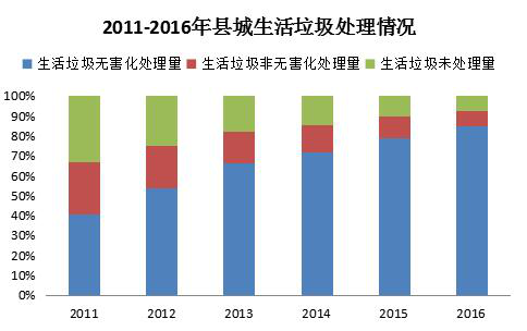 2016年年末,全国县城共有污水处理厂1513座,比上年减少86座,污水厂日处理能力3036万立方米,比上年增长1.2%,排水管道长度17.2万公里,比上年增长2.4%。县城全年污水处理总量81亿立方米,污水处理率87.38%,比上年增加2.16个百分点,其中污水处理厂集中处理率85.8%,比上年增加2.34个百分点。