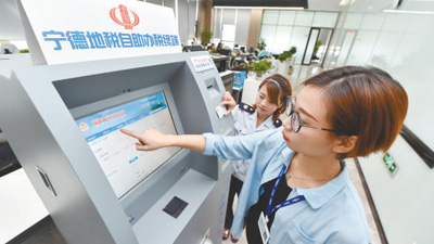 企业员工在自助办税终端上办理纳税手续。宋为伟摄