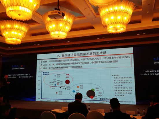 何伟表示,2017年美国数字经济规模为11.5万亿美元,去年中国为27.2万亿人民币,2018年上半年中国约16万亿人民币。从占比来看,英国、美国、德国等发达国家数字经济GDP占比较高,中国处于新兴经济体前列,而新兴经济体增速高于主要发达国家。
