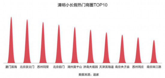 厦门滨海、北京崇文门、苏州同里、北京前门、湖州莫干山、济南大观园、天津滨海道、南京夫子庙、苏州周庄、南京珠江路跻身国内热门商圈TOP10。
