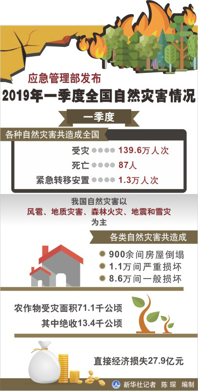 图表:应急管理部发布2019年一季度全国自然灾害情况