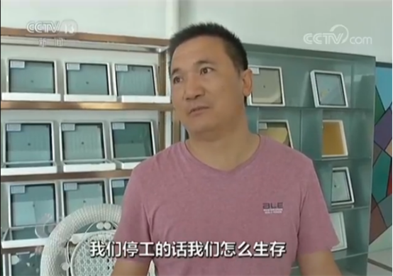 美力晶玻璃有限公司负责人表示:“没有怎么解决,让我们交罚款,我们没有办法交,只能政府协调处理。我们没有办法停工,我们是接单生产企业,我们停工的话,怎么生存?”