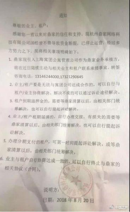 长租公寓首例爆仓事件——杭州鼎家破产,4000租户受损