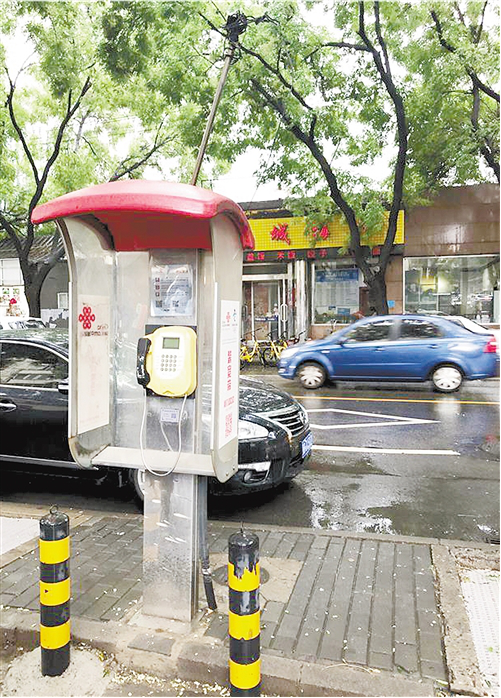 北京市西城区街头矗立的公用电话,长时间无人使用。 袁勇 摄