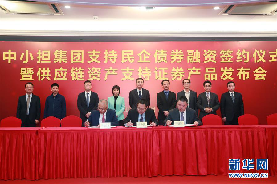 嘉宾出席深圳市中小企业信用融资担保集团举行的支持民企债券融资签约仪式暨供应链资产支持证券产品发布会。深圳“四个千亿” 支持民企发债专项计划政策进一步落地(2019年3月12日摄)。新华社发