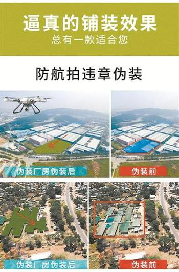 与山体喷漆、摆盆景等“简单粗暴”的手段相比,正在形成的躲避环保检查产业链危害更甚。其中,最具代表性的产品当属一些电商平台推出的“防航拍”伪装网。