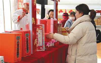 昨日,北京稻香村东直门营业部,顾客挑选“细八件”礼盒。记者 陈琳 摄