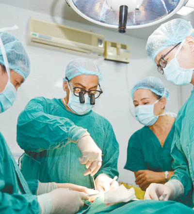 7月29日,托帕兹(左二)在德阳市人民医院为患者进行手术。