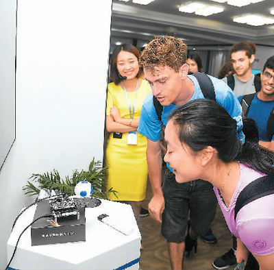 7月13日,中外高校的学生在科大讯飞体验智能语音产品。新华社记者 张 端摄