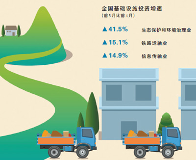 铁路建设蹄疾步稳,只是上半年加大基础设施补短板力度的一个缩影。尽管今年前5月,基础设施投资同比增速比1—4月份回落0.4个百分点,但基础设施投资中,生态保护和环境治理业投资增长41.5%,铁路运输业投资增长15.1%,信息传输业投资增长14.9%,补短板力度不减。聚焦三大攻坚战等薄弱环节,在脱贫攻坚、生态环保、农业农村、水利、交通、通信等基础设施领域,投资正加快落地。