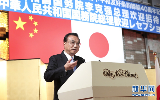 李克强在纪念中日和平友好条约缔结40周年招待会上的演讲(全文)