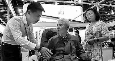 第七届中国国际养老服务业博览会现场,一款理疗设备吸引了老年观众的关注。新华社发