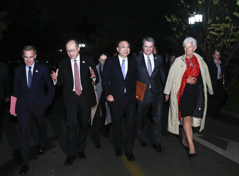 李克强表示,多边主义和自由贸易是走向繁荣和实现包容性增长的必由之路,各方应共同支持多边主义,推动全球化健康发展,共同构建开放型世界经济。