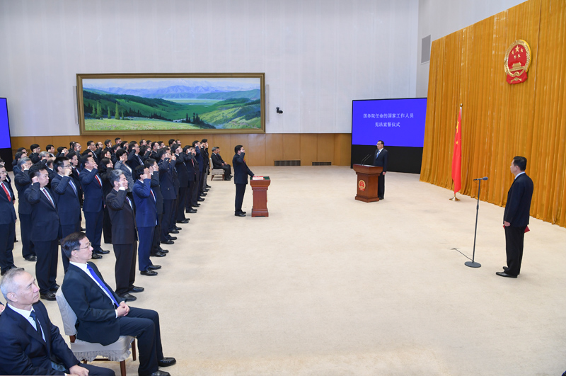 11月20日,国务院在中南海举行宪法宣誓仪式。国务院总理李克强监誓。