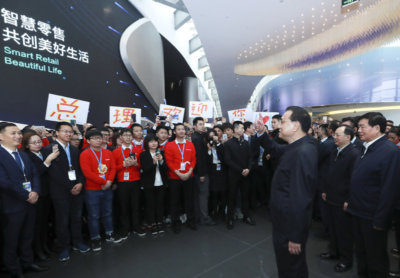 李克强来到苏宁控股集团,对企业加快转型、满足消费者多样化需求予以肯定。他说,我国消费市场空间巨大,既要创新模式提升实体店,更要线上线下相互促进。希望你们通过智能物流、云技术等提供保证质量、消费者满意的产品和服务,像孙悟空一样,既能“腾云驾雾”,又能“钻进”消费者心里,让消费者顺心,促进消费潜力更多释放。李克强还与苏宁零售云加盟商视频交流,祝贺他通过“互联网+”实现了创业梦想。
