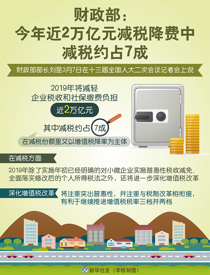 图表:财政部:今年近2万亿元减税降费中减税约占7成 新华社发 李栋 制图