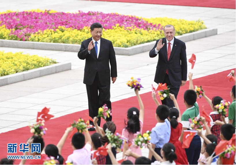 7月2日,国家主席习近平在北京人民大会堂同土耳其总统埃尔多安举行会谈。这是会谈前,习近平在人民大会堂东门外广场为埃尔多安举行欢迎仪式。 新华社记者 殷博古 摄