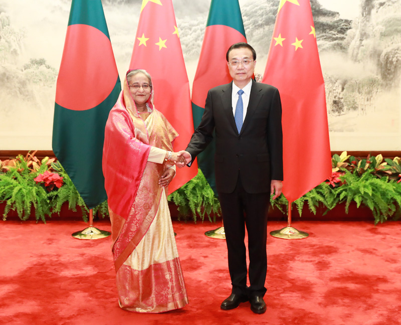 李克强表示,孟加拉国是中国在南亚地区的重要合作伙伴,两国传统友好。建交以来,双方在涉及彼此核心利益和重大关切问题上始终相互理解、相互支持。习近平主席2016年成功访问孟加拉国,两国建立战略合作伙伴关系。中方愿同孟方密切高层交往,巩固战略互信,深化互利合作,增进民间友好,推动两国关系取得新的发展。