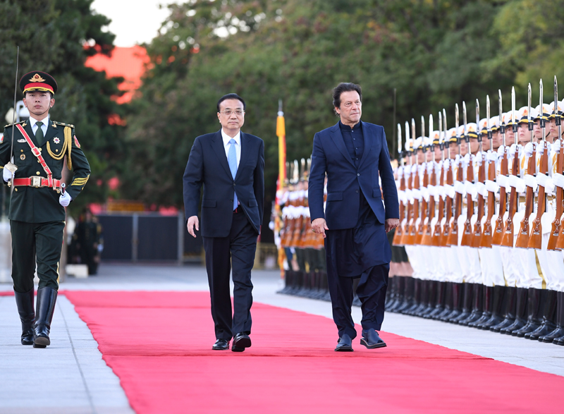 会谈前,李克强在人民大会堂东门外广场为伊姆兰·汗举行欢迎仪式。
