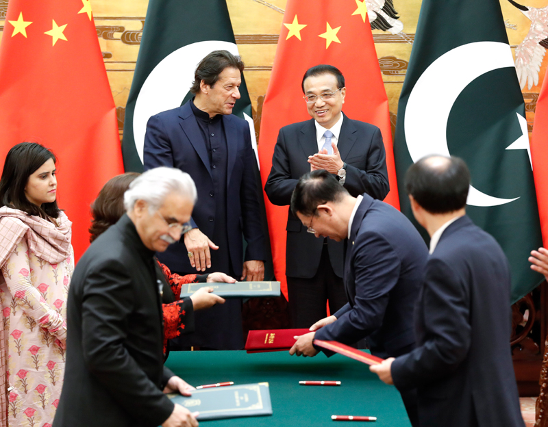 李克强指出,中巴合作不仅符合两国利益,也有利于地区和平稳定。中方高兴得知巴基斯坦已经渡过了经济上的困难时期,愿继续向巴方提供力所能及的帮助。我们愿同巴方加强发展战略衔接,继续推动中巴经济走廊高质量发展,加强基础设施、经贸、财金、产能等领域合作,采取有力措施促进中巴贸易更加平衡发展,利用中巴自贸协定第二阶段议定书扩大巴优势产品对华出口,保护在巴中资机构和人员安全,促进双方互利共赢、共同发展。