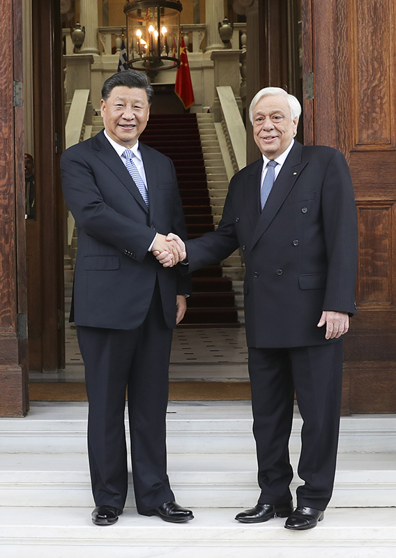 会谈前,帕夫洛普洛斯为习近平举行隆重欢迎仪式。