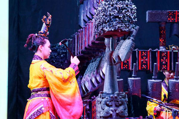 此次活动中,国家级非物质文化遗产项目《诸城派古琴》第五代代表性传承人高培芬现场演奏古琴,弦音时而孤韵、时而广袤,如行云流水沁人心脾。同一时刻,湖北省博物馆的演奏师隔空奏响编钟,一钟双音,金石传响。两地博物馆通过5G直播、影像投屏技术,在5G的高速度、低延时下让古琴与编钟实现了隔空协奏。