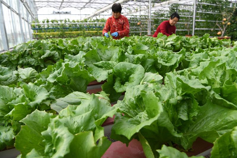 1月4日,河北省邯郸市广平县南阳堡镇后南堡村的农民在大棚内管护蔬菜。