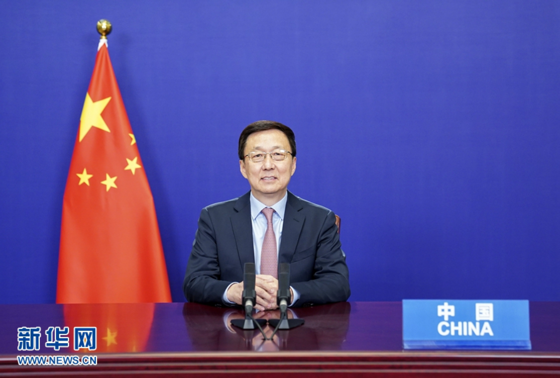 1月25日,中共中央政治局常委、国务院副总理韩正在北京以视频方式出席首届气候适应峰会并发表致辞。新华社记者 殷博古 摄