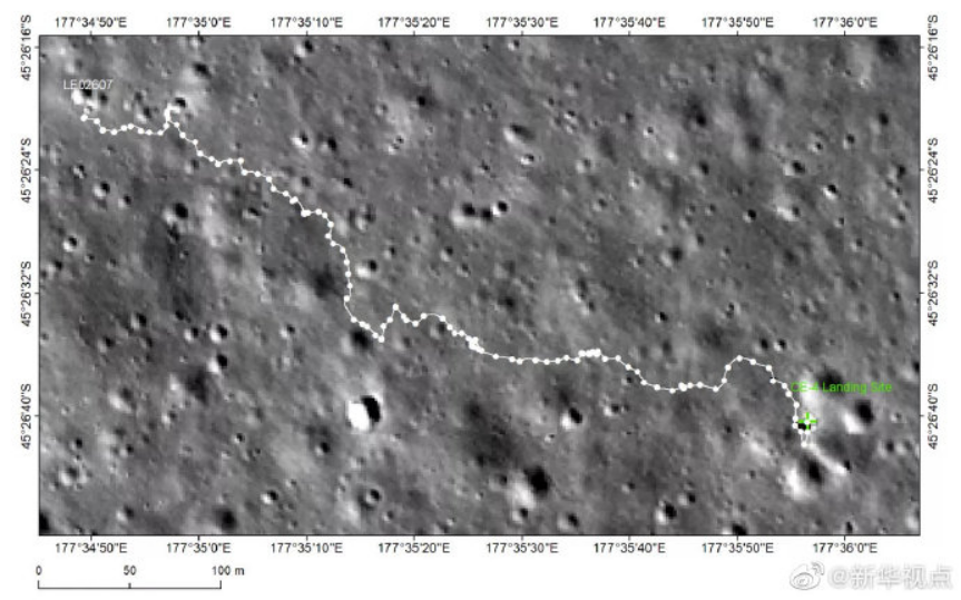 记者从国家航天局获悉,嫦娥四号着陆器和“玉兔二号”月球车分别于2月6日16时48分和4时26分结束月夜休眠,受光照自主唤醒,进入第27月昼工作期。“玉兔二号”月球车走到月面以来,累计行驶里程约628.5米,目前位于着陆点西北方向,距离着陆点直线距离约430米。(记者:胡喆 图片来源:国家航天局,绿点处为嫦娥四号着陆点)