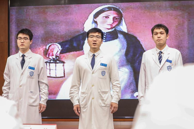 5月10日,北京大学人民医院的新入职护士一同重温南丁格尔誓言。