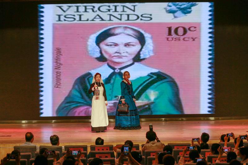 5月10日,护士代表在中日友好医院国际护士节庆祝活动上进行“护士服变迁”展示。