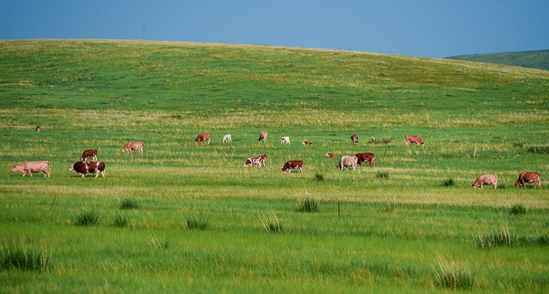 7月11日,牛群在锡林郭勒大草原上觅食。