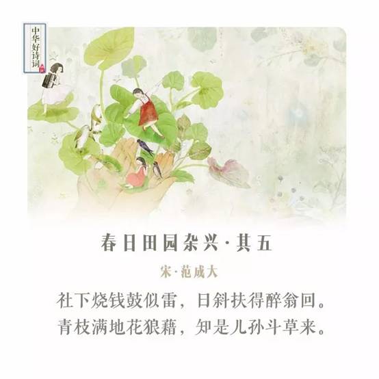 春天草长莺飞,儿童互相用草角力,坚韧者胜,折断者败。对现代人来说听着或许无聊,可这就是返璞归真的童趣啊!