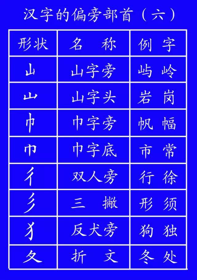 后撇:刀、力、乃、万(笔顺:横、横折钩、撇)、方(笔顺:点、横、横折钩、撇)。