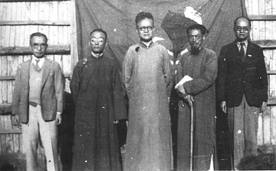 1940年,西南联大中文系教授在云南大普吉镇合影。左起:朱自清、罗庸、罗常培、闻一多、王力。
