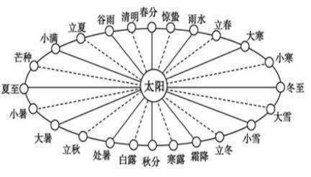 二十四节气是根据地球绕日公转时在黄道(即公转轨道面)上的位置确定的。把地球绕日轨道平均分为二十四份,每隔15°为一个节气,始于立春,终于大寒,周而复始。
