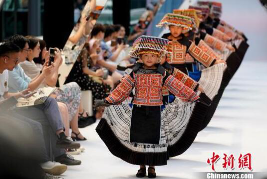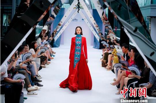 1日的开集仪式以一场苗族百褶裙开集舞拉开帷幕,随后上演了一台蓝染百褶裙主题时装秀,最原生态的中国少数民族百褶裙结合了现代设计,模特身着EVE CINA百褶裙时装翩跹走过,成为现场最吸睛的一道风景。