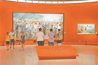 在中国美术馆展出时,许多观众久久驻足在《改革再出发》前。