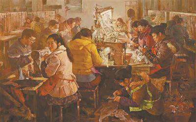 《繁忙的生产线—— 缤姿鞋业变奏曲》 油画