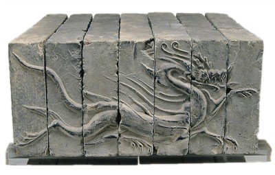 1976年3月,常州南郊茶山戚家村发现一座南朝墓葬,其中出土了850多块画像砖。这批南朝画像砖不仅数量众多、题材丰富、布局考究,而且图像清晰,制作工艺精湛,雕刻手法多样。按题材可分为人物、神兽和花纹三类。其中最值得称道的是一组龙纹画像砖,由7块单砖拼镶而成,长34厘米,宽35.2厘米,高16.5厘米,呈浅浮雕的立体图案。