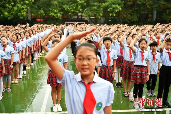 资料图:开学典礼上,学生们向国旗敬礼。 中新社记者 翟羽佳摄