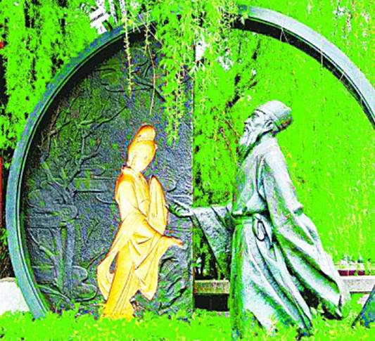 绍兴沈园因陆游的诗《沈园二首》而闻名。图为沈园中陆游与唐琬的塑像。