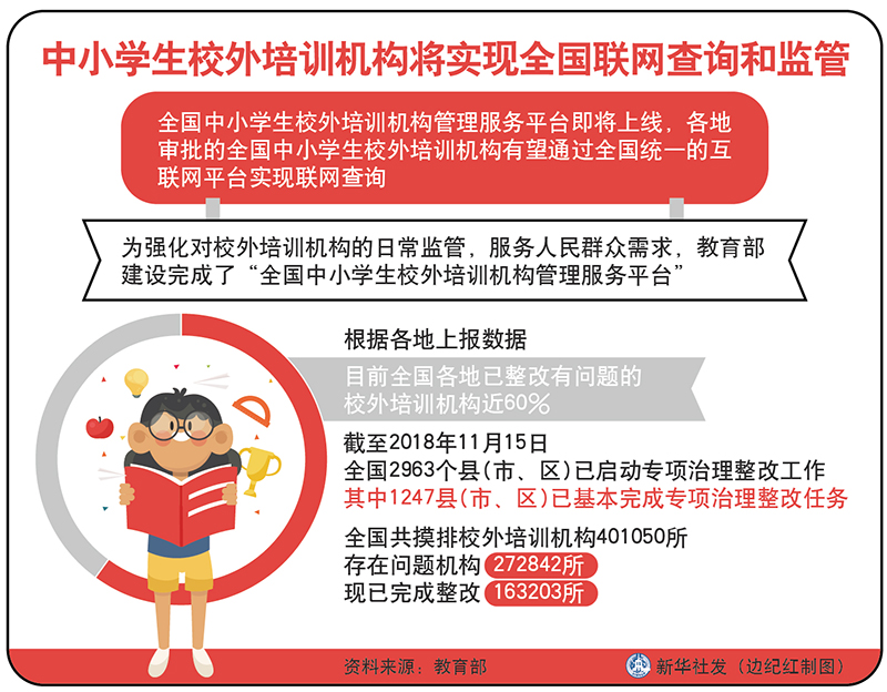 图表:中小学生校外培训机构将实现全国联网查询和监管