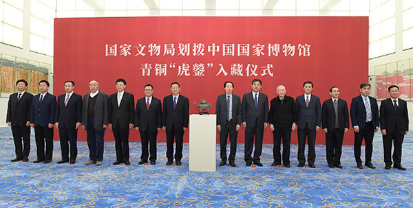 在青铜“虎鎣”入藏仪式中,国家文物局局长刘玉珠指出,近年来,国家文物局积极开展流失文物追索返还工作,成功促成多批流失文物回归祖国,青铜“虎鎣”的回归正是其中具有代表性的范例,彰显了中国政府保护文化遗产的坚定信念与负责态度,也显示了我国流失文物追索返还工作获得了社会各界广泛的理解与支持。国家文物局将本着合作、开放的态度,在各相关部门的支持下,统筹引导收藏机构、协会组织、媒体与社会各界的积极力量,推进流失文物追索返还工作更加主动有序开展,为建立更加公平正义的流失文物追索返还国际规则贡献中国力量、中国智慧。