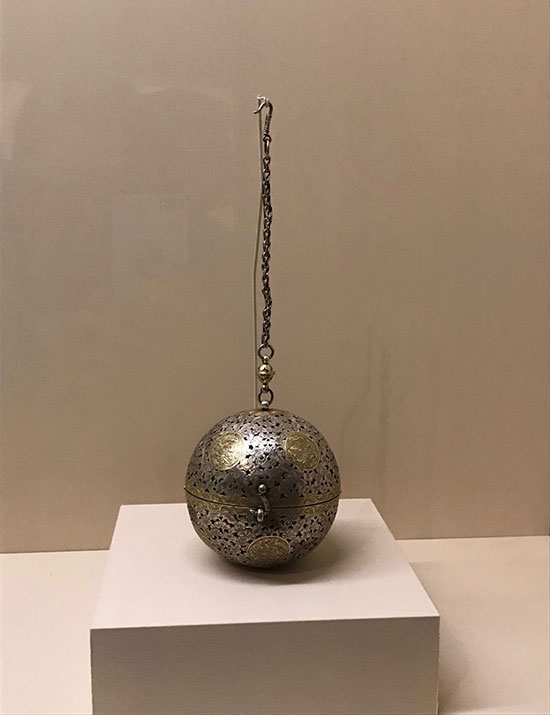 据历史记载,点燃香囊内的香料,沁人心脾的芳香立刻从镂空处溢出。香囊有多种形制,稍小一点的可以用于寒冬捂手取暖,稍大一点的挂在床帐四角起装饰作用,还可以在就寝前熏烤被褥,正所谓“锦衣香裘”。